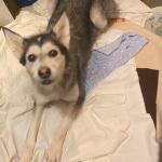 Сука, серый с белым, 2 года